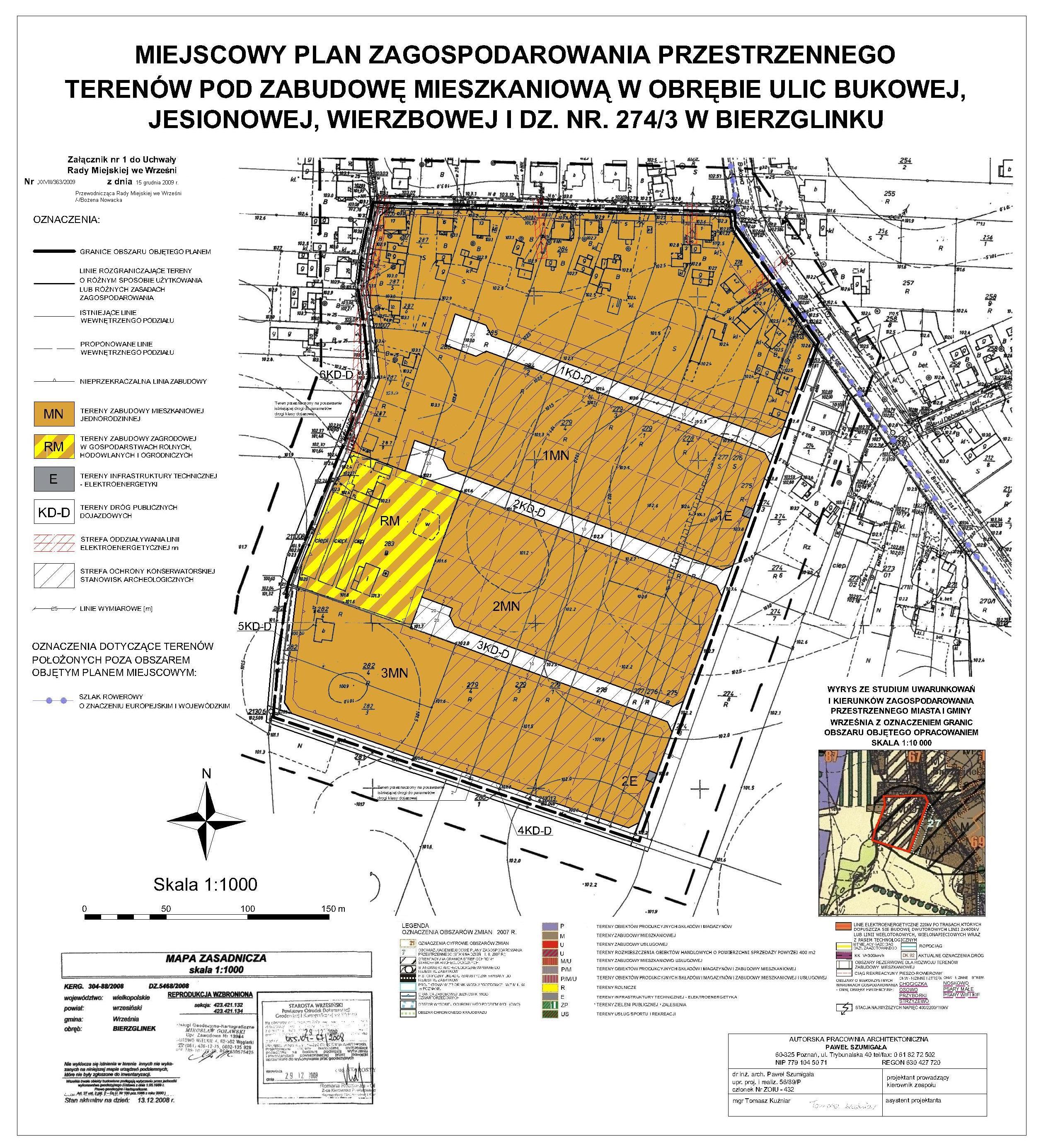 Podstawę do opracowania wymienionego wyżej planu stanowiła uchwała Nr XVIII/230/2008 Rady Miejskiej we Wrześni z dnia 7 listopada 2008 r., w sprawie przystąpienia do sporządzenia miejscowego planu zagospodarowania przestrzennego terenów pod budownictwo mieszkaniowe w obrębie ulic Bukowej, Jesionowej, Wierzbowej i dz. nr 274/3 w Bierzglinku
